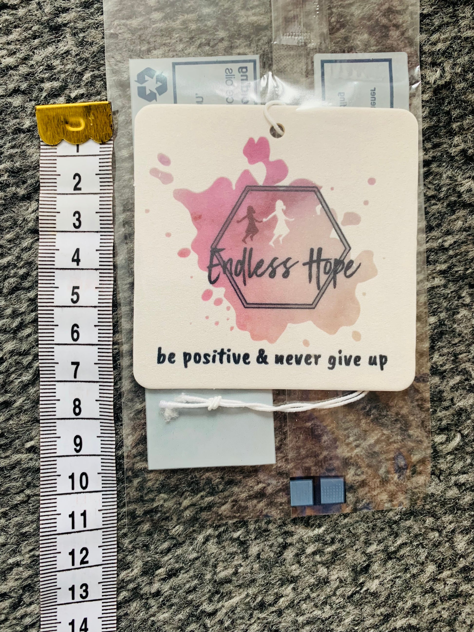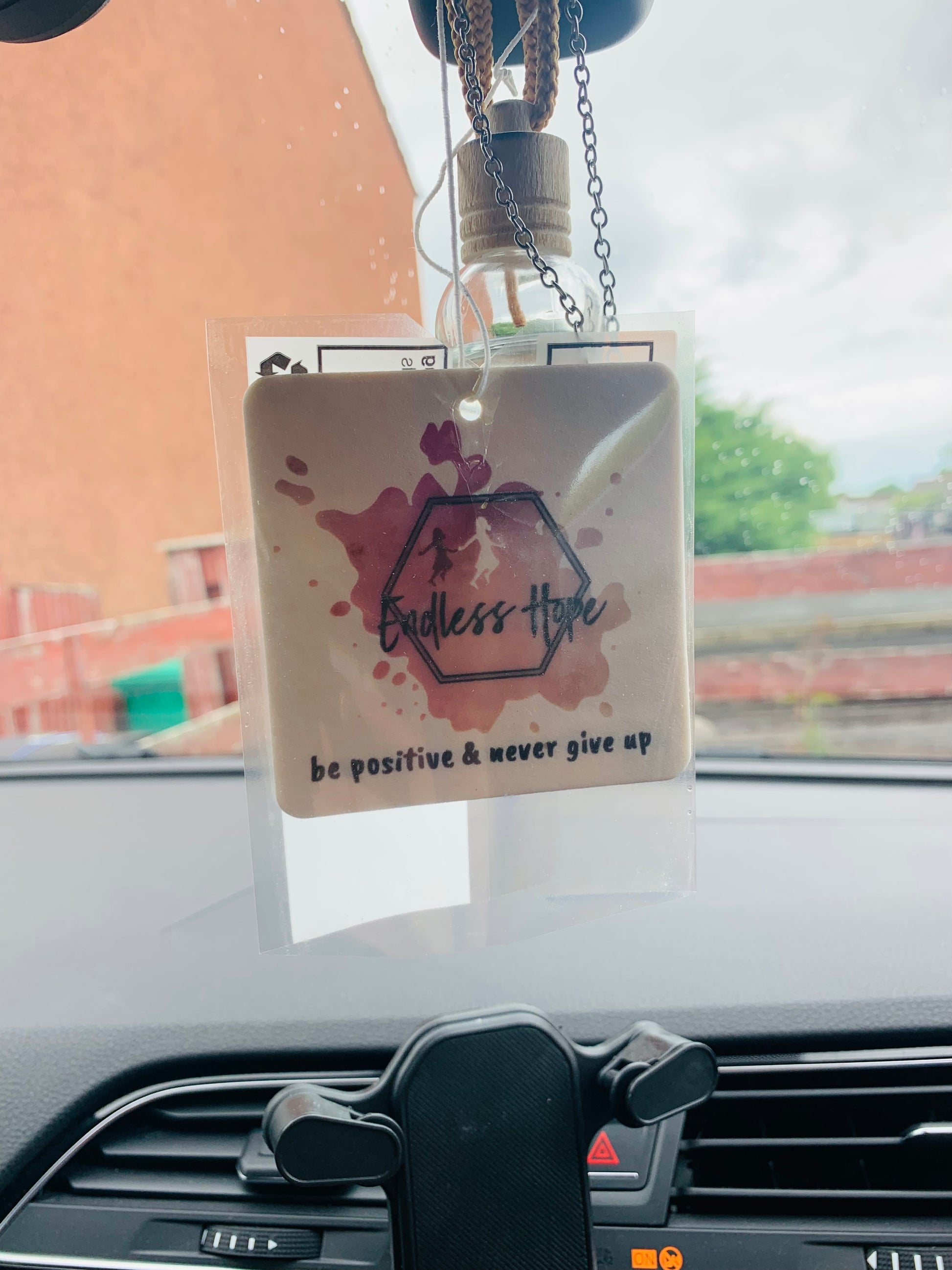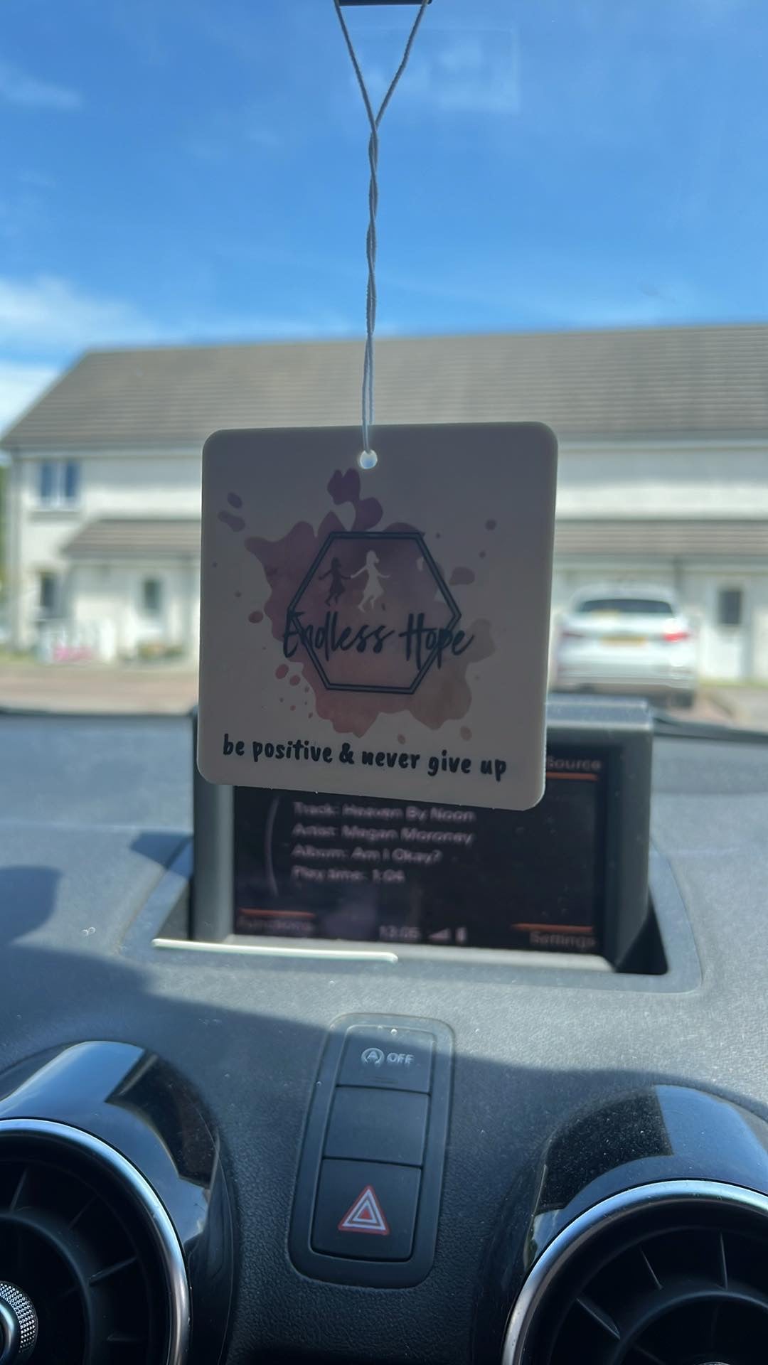Car/home Air fresheners, double sided with a choice of 4 different scents to choose from. Promoting a positive message for mental well-being.
