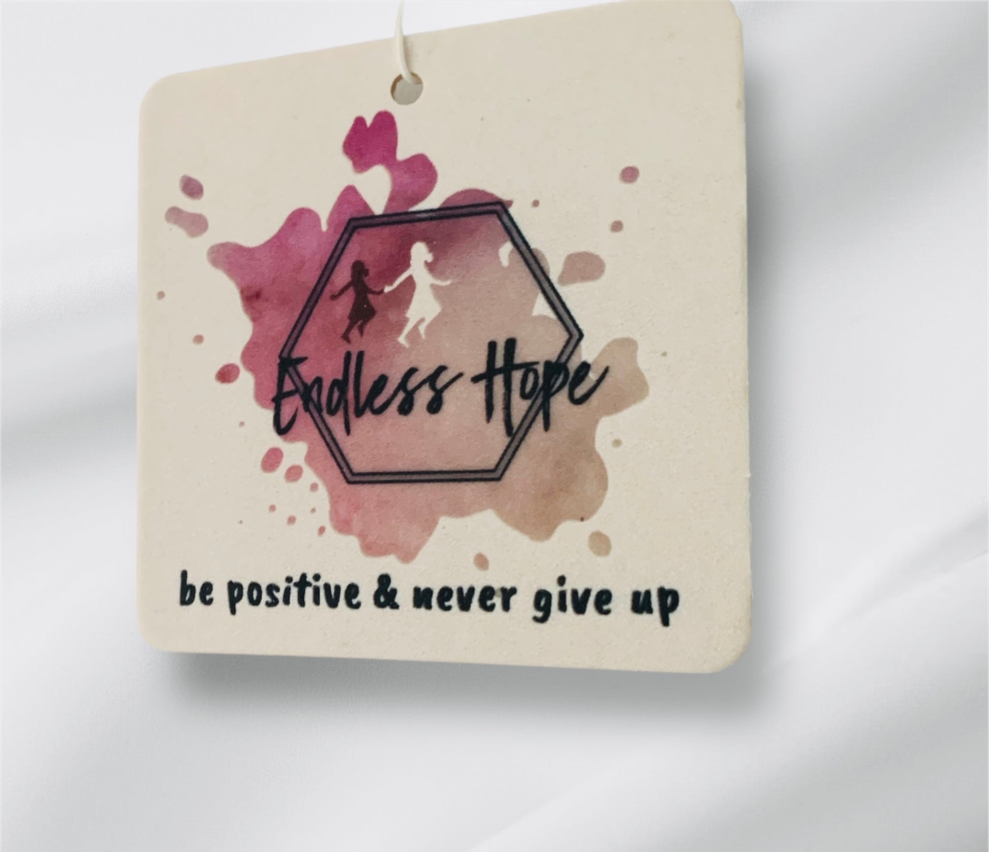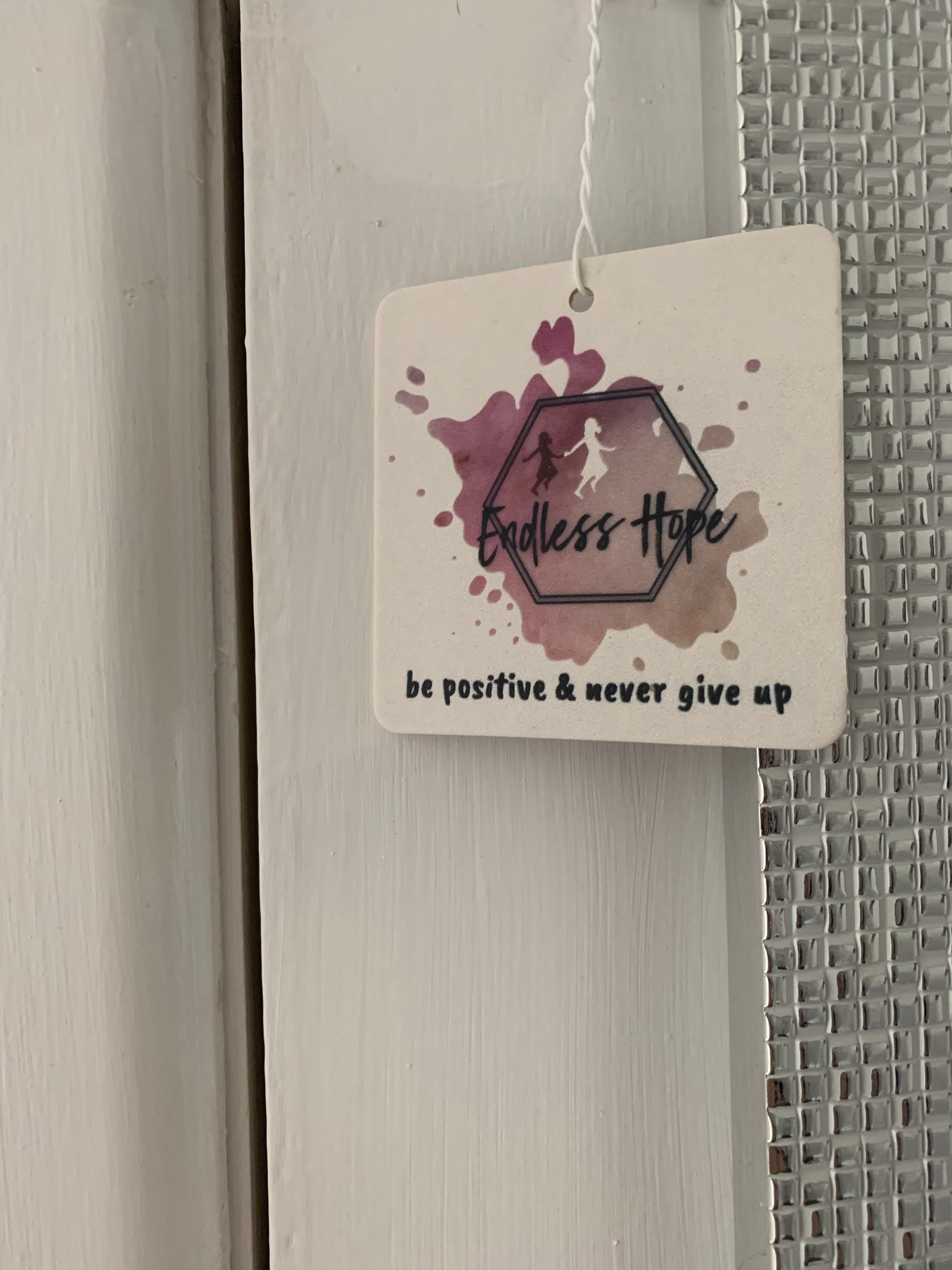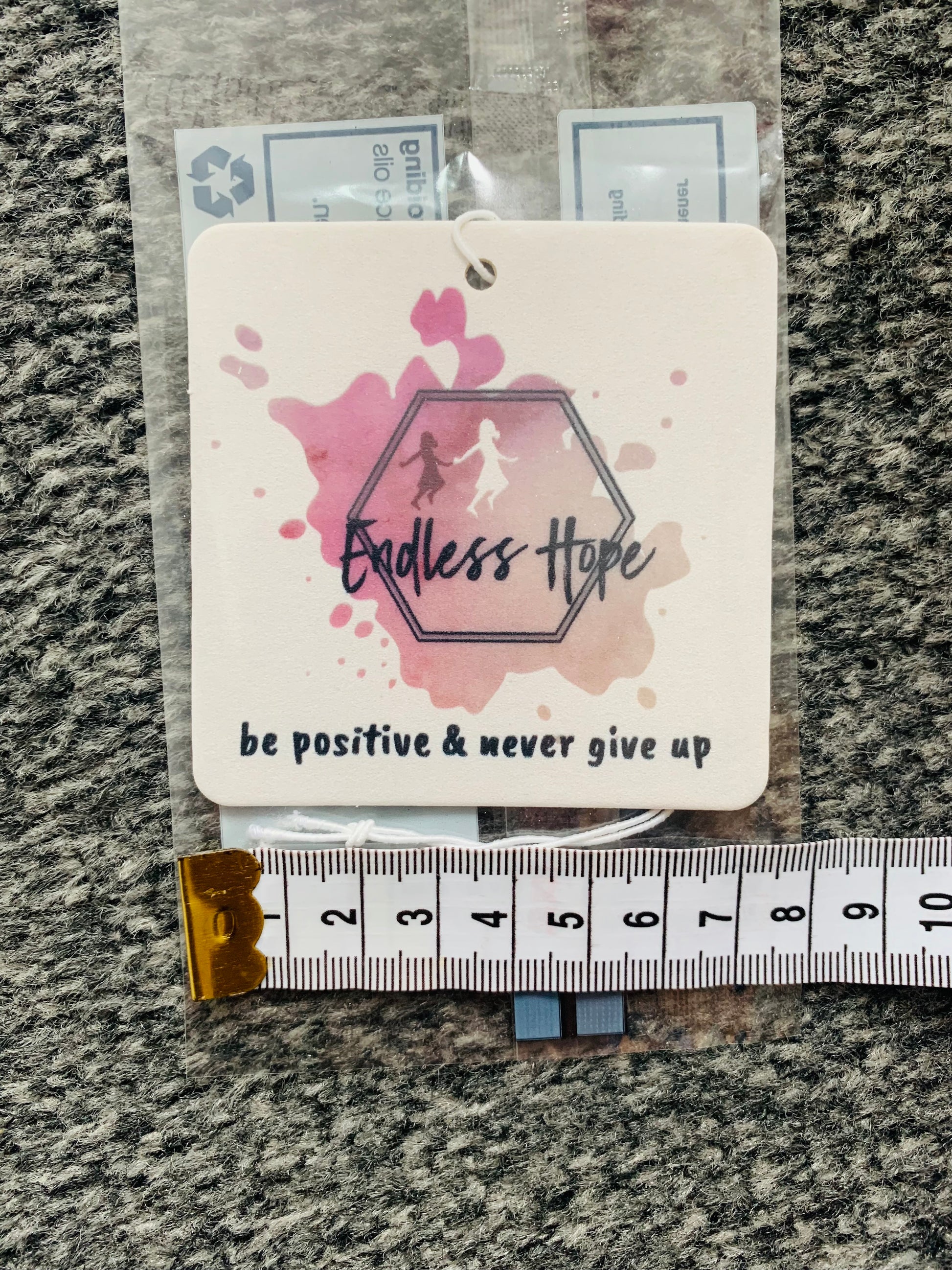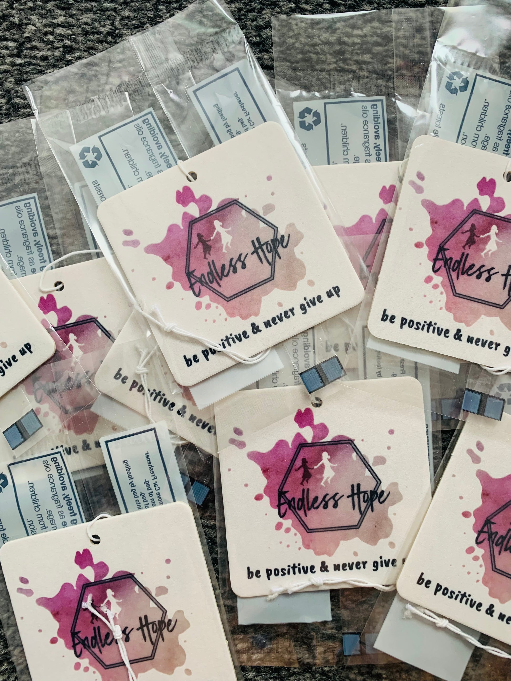 Car/home Air fresheners, double sided with a choice of 4 different scents to choose from. Promoting a positive message for mental well-being.